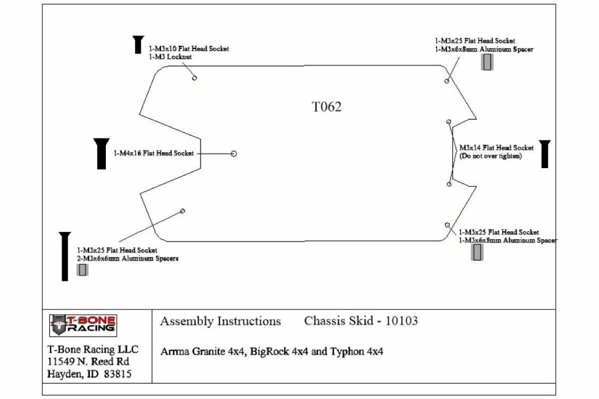 10103 | T-Bone Racing Black ARRMA Kraton 4S, Big Rock 3S, Typhon 3S & Senton 3S Chassis Skid Plate
