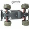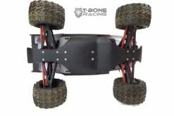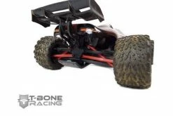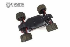 T-Bone Racing chassis brace for the 1/16 E-Revo is made of .125″ black nylon and weighs 2.5 oz. It is mounted with 12 screws to spread the impact across the whole length of your chassis. T-Bone use aluminum standoffs to mount between the stock skid/chassis and their brace, providing clearance for the A-Arms. The brace comes with 2 holes front and rear to mount the optional bolt-on bumpers.