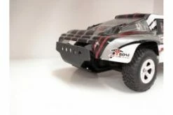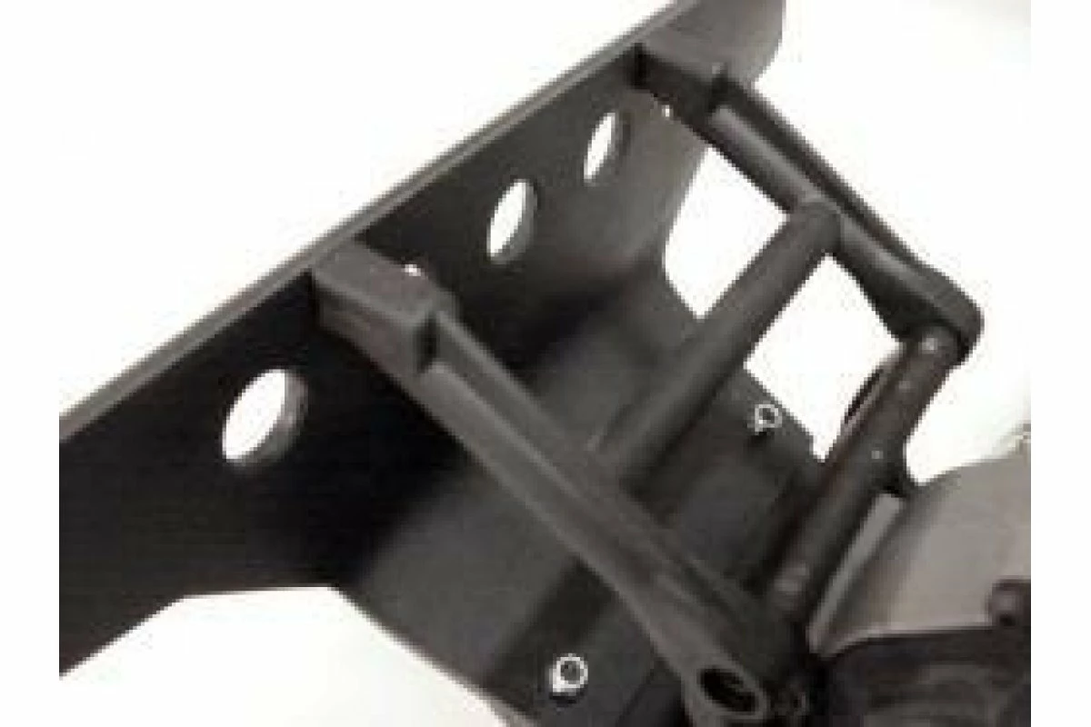 The T-Bone Racing The SC Racer rear bumper is made of nylon and mounts to the skid with two screws and lock nuts and to the stock support arms with two screws. The skid portion mounts under the chassis with four screws.