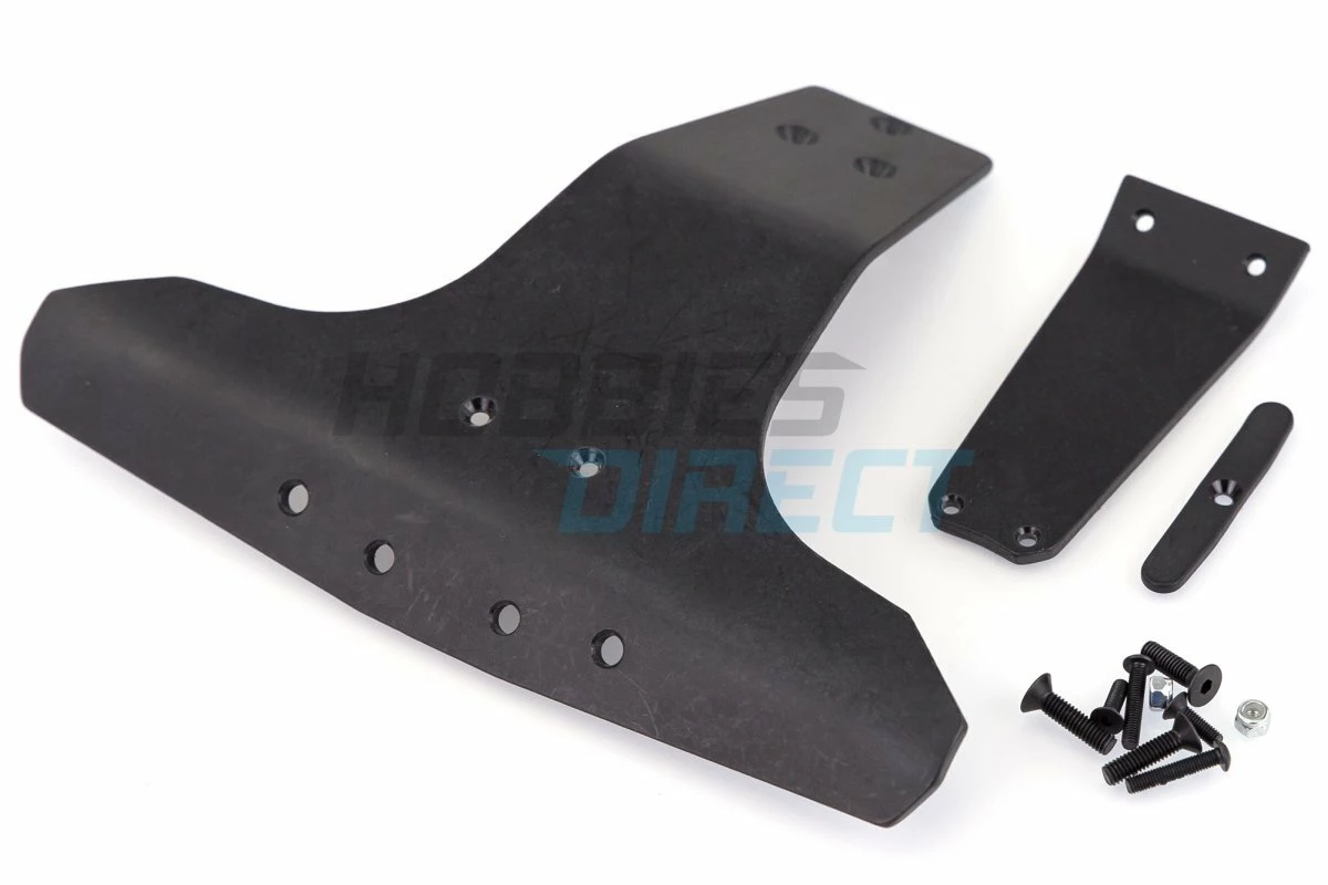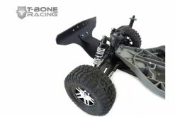 This T-Bone Racing SC Basher front bumper mounts under the chassis and replaces the stock bumper and mounting hardware.A nylon brace mounts on the bumper and extends to the differential, shock tower or bulkhead.