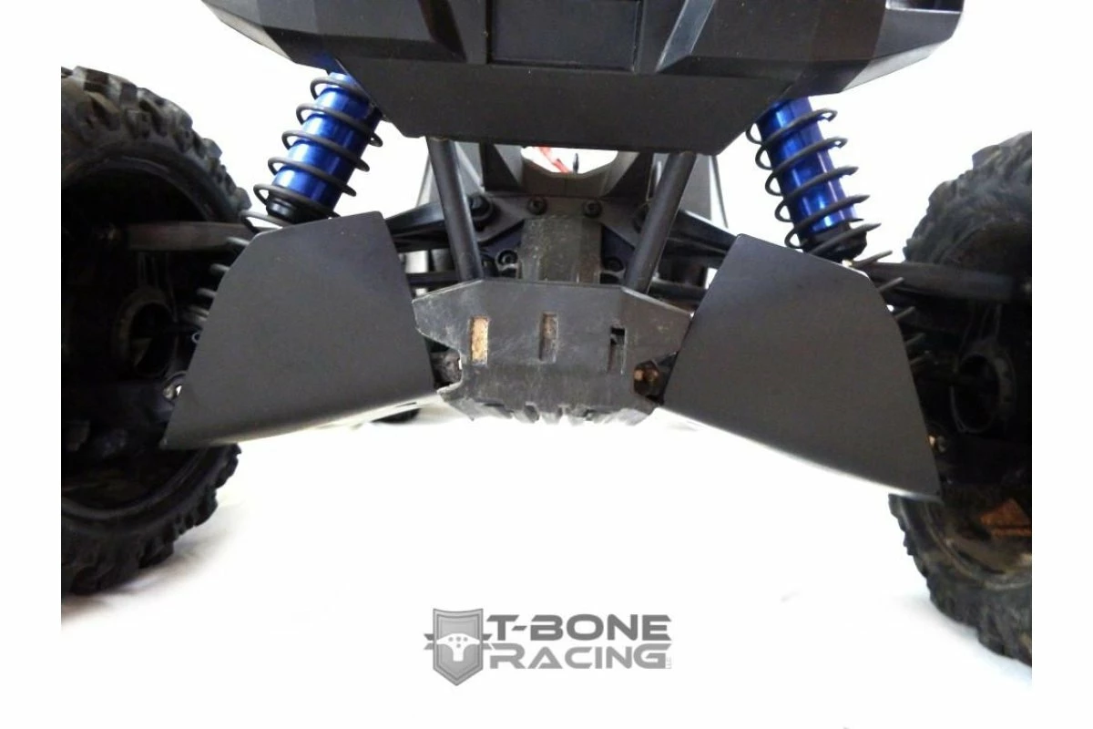 The Traxxas X-Maxx was built for bashing and that means driving it through copious amounts rocks and brush which is known to wreak havoc on shocks and driveshafts.T-Bone Racing has a sleek solution this need of protection. Our A-Skids offer great protection from rocks lodging into your driveshafts and extend upwards to protect the lower shock mounts as well.