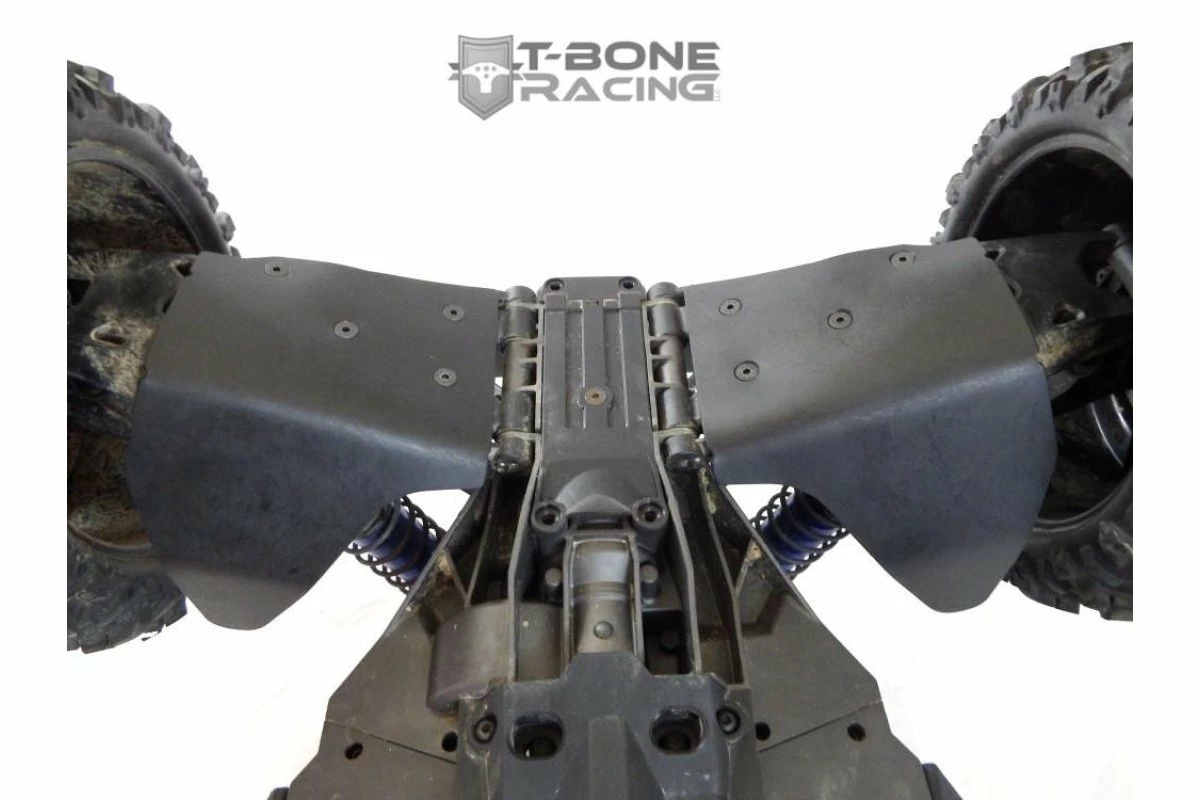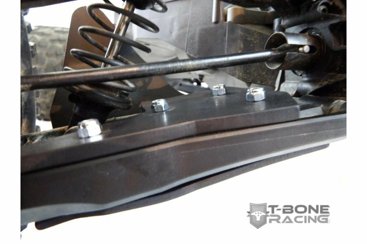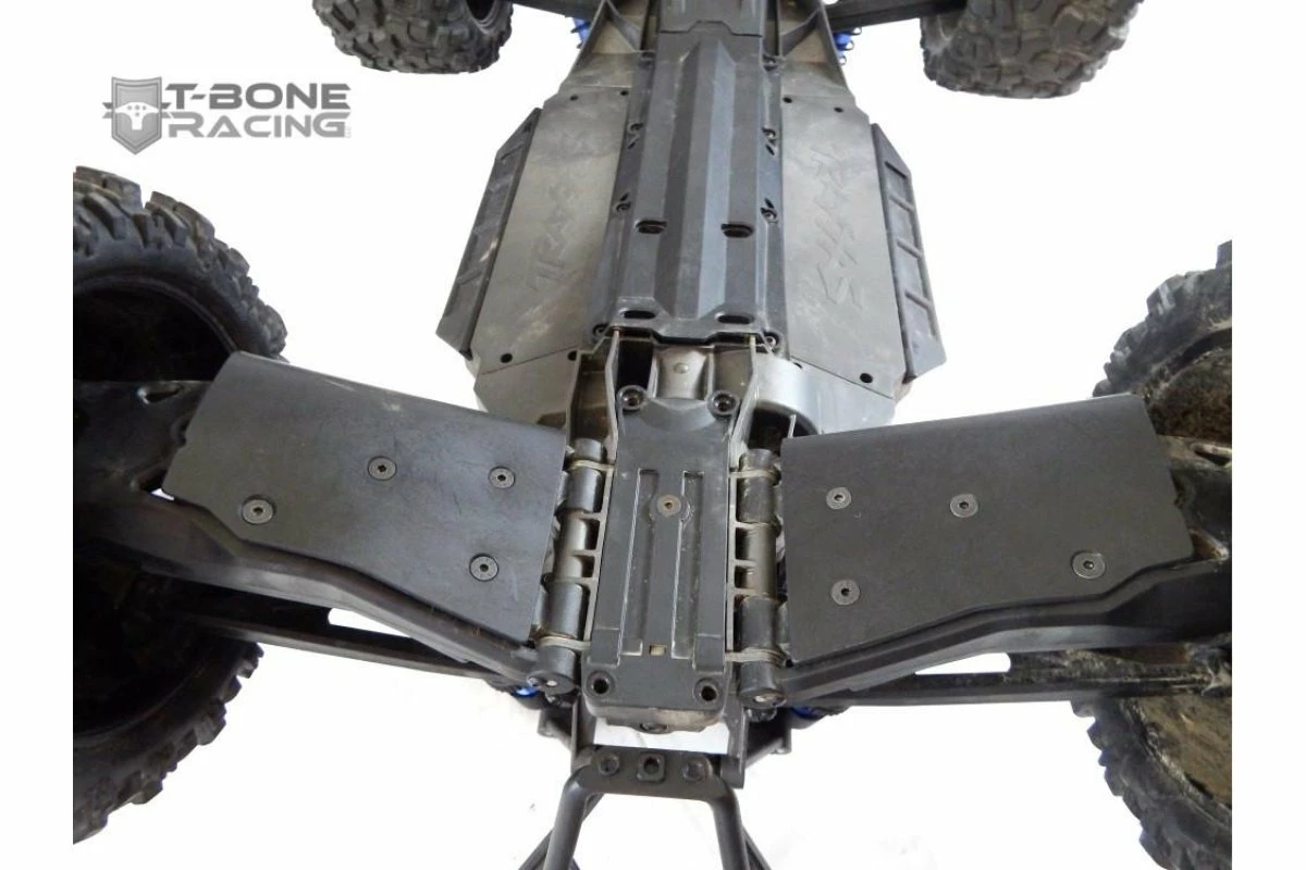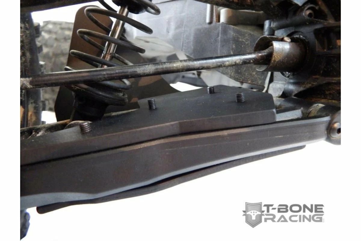 The Traxxas X-Maxx was built for bashing and that means driving it through copious amounts rocks and brush which is known to wreak havoc on shocks and driveshafts.T-Bone Racing has a sleek solution this need of protection. Our A-Skids offer great protection from rocks lodging into your driveshafts and extend upwards to protect the lower shock mounts as well.